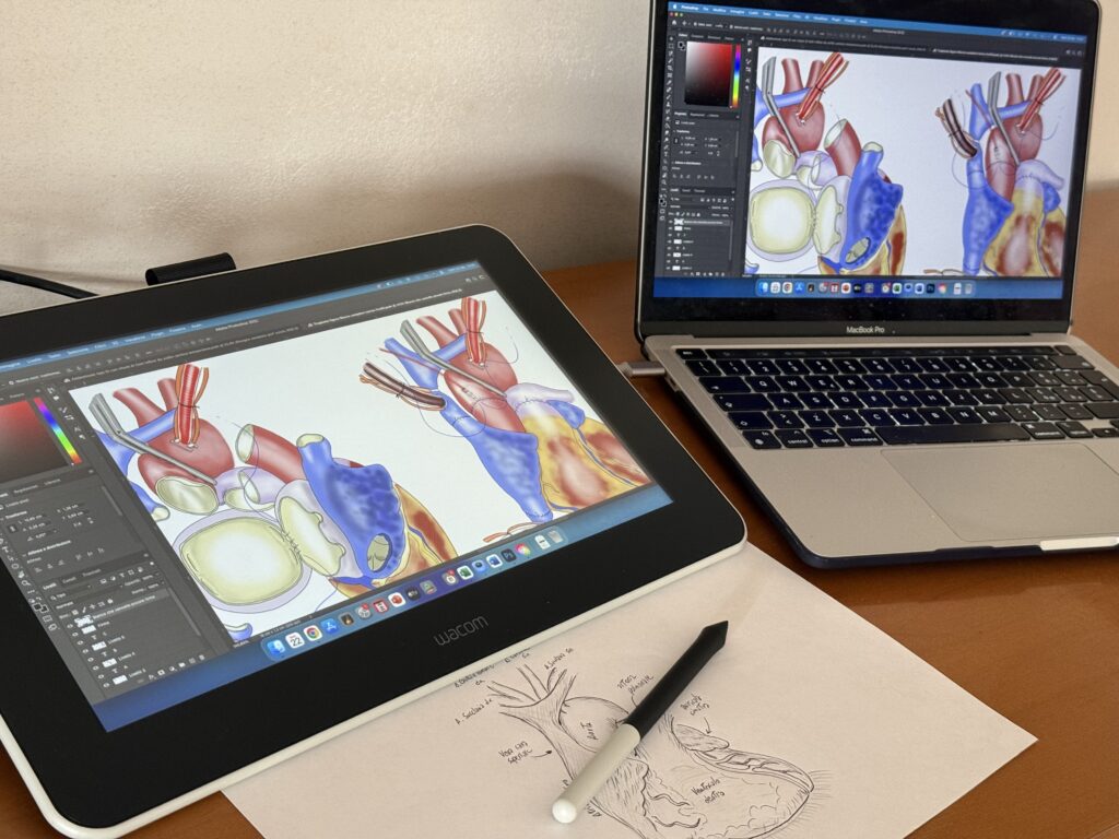 Sono stato sempre affascinato dal funzionamento del corpo umano. Durante gli studi di Medicina mi sono interessato alla Cardiochirurgia e poco dopo la Laurea ho intrapreso la specializzazione al Policlinico Gemelli di Roma. Era solo questione di tempo prima che chirurgia e disegno si incontrassero: vuoi per creare illustrazioni di pubblicazioni scientifiche, per arricchire le lezioni di Cardiochirurgia a studenti e specializzandi o per creare volantini informativi che aiutassero i pazienti. Nel corso degli anni, ho accumulato una grossa quantità di materiale che potrebbe essere utile a pazienti, studenti e specializzandi. Questo sito mi permette di condividerlo con tutti.
